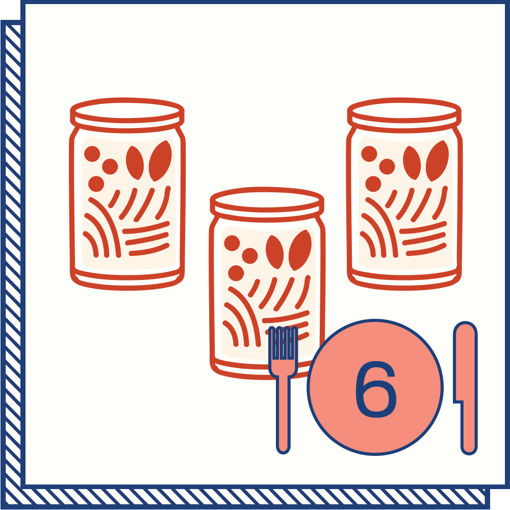 - All the ingredients* to make recipes 1-3 from our weekly Menu Calendar with 2 portions per recipe.